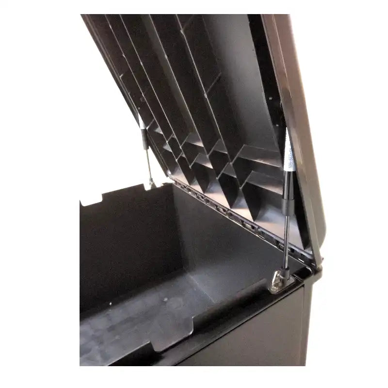Is voorzien van gasdrukveren voor gemakkelijk openen en sluiten.